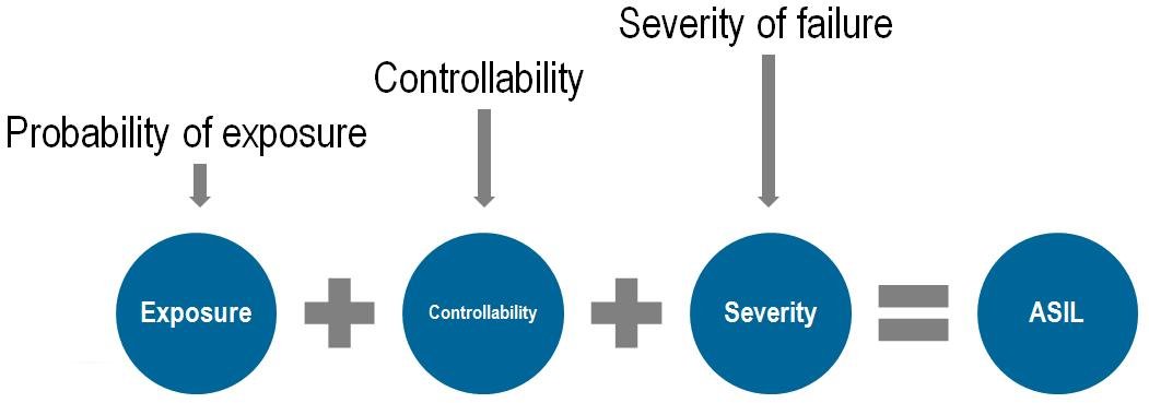 The estimation of this risk, based on a combination of the probability of exposure, the possible controllability by a driver, and the possible outcome's severity if a critical event occurs, leads to the ASIL. The ASIL does not address the technologies used in the system; it is purely focused on the harm to the driver and other road users.